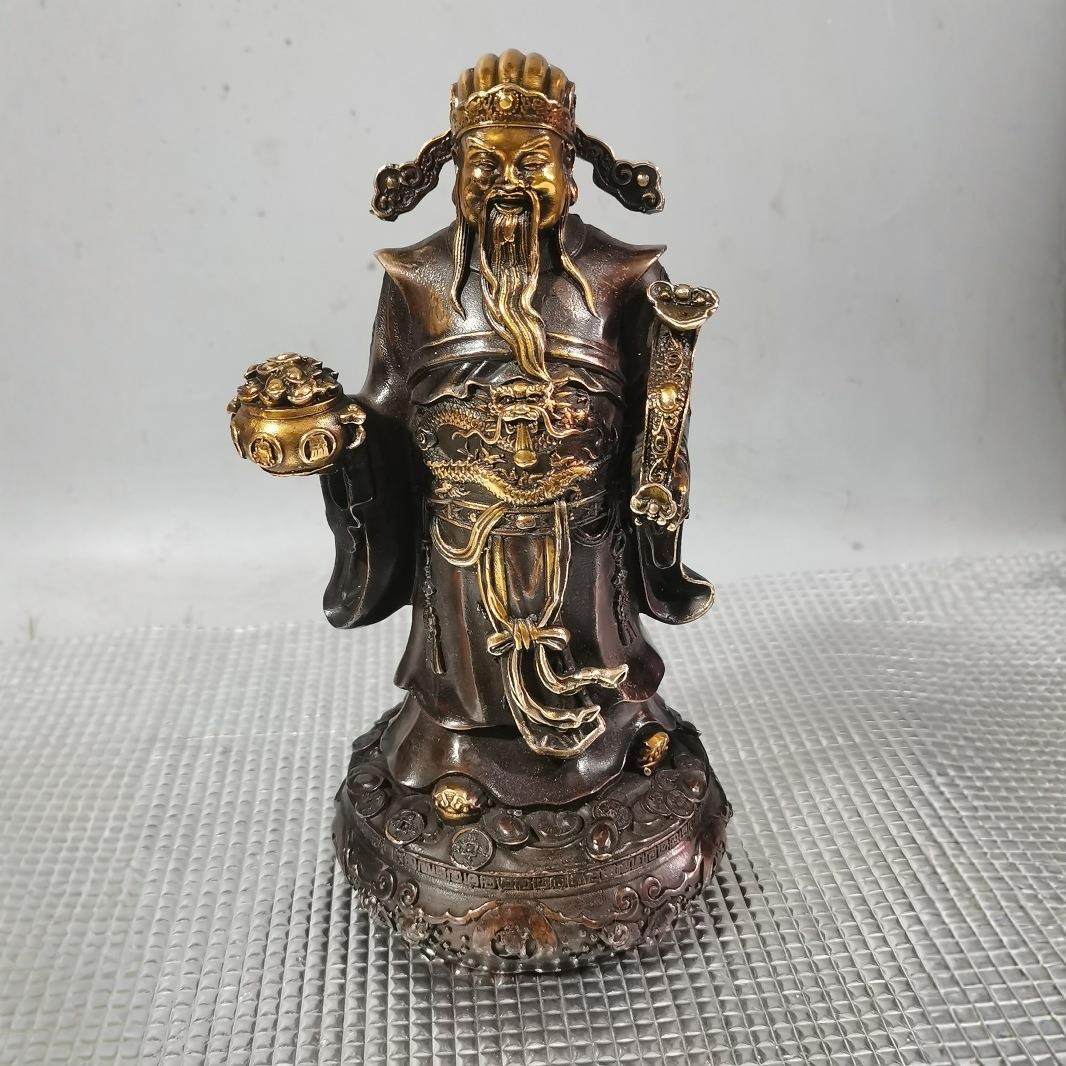 仿老物件老铜古董古玩杂项收藏铜鎏金财神爷摆件仿古铜器