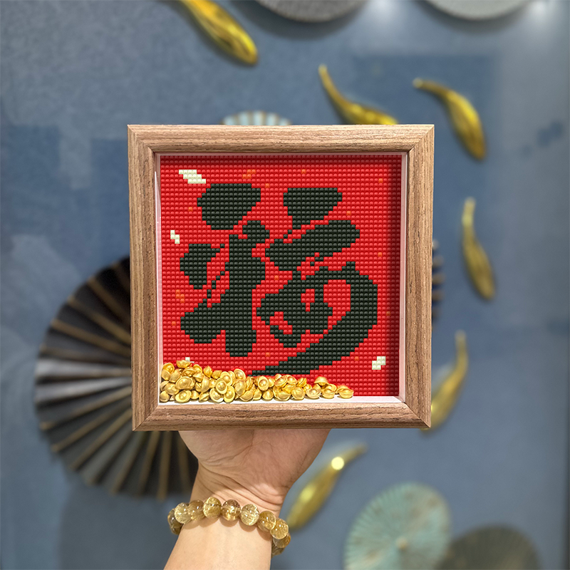真玻璃福禄寿喜财钻石画带框