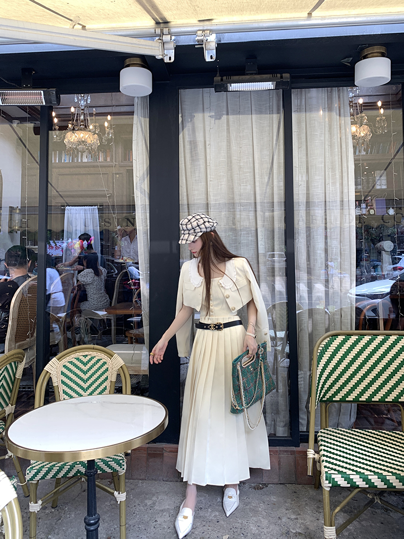 YEXIAOTING叶小婷 梦境里的钟声 小香吊带背心高腰百褶长裙三件套