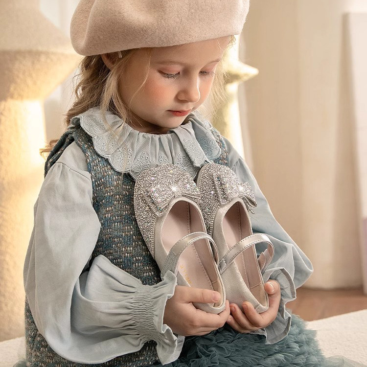 真皮童鞋女童宝宝皮鞋2025秋冬新款小女孩公主水晶鞋儿童洋气单鞋
