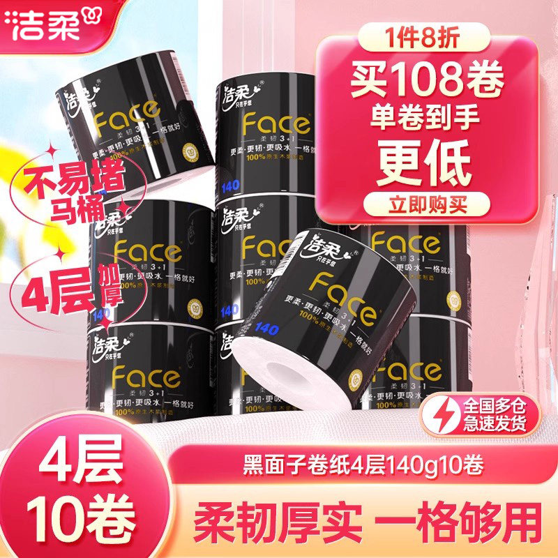 洁柔卷纸卫生纸纸巾face有芯家用实惠4层140g厕纸整箱手纸卷筒纸