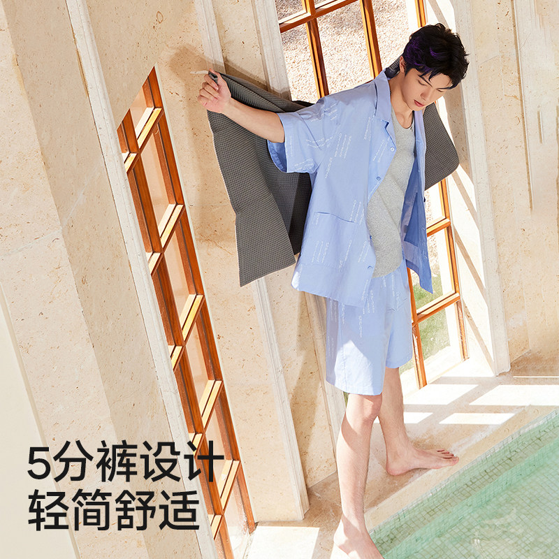 螃蟹秘密睡衣男国风新中式100全棉家居服文艺可外穿纯棉