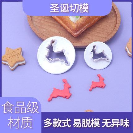 圣诞节麋鹿压花模具弹簧饼干模花朵云朵翻糖蛋糕馒头面食磨具烘焙