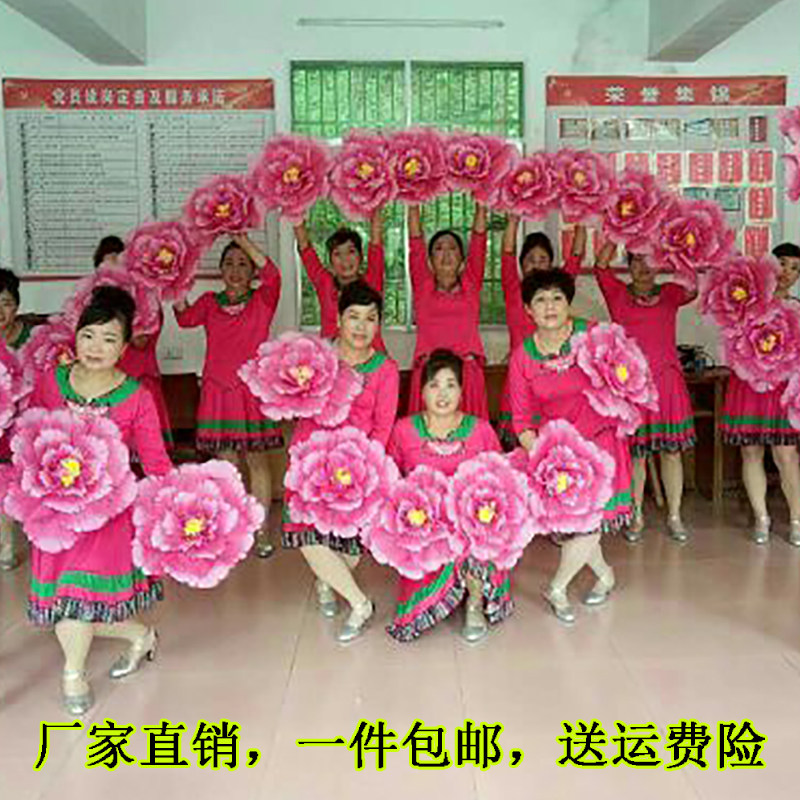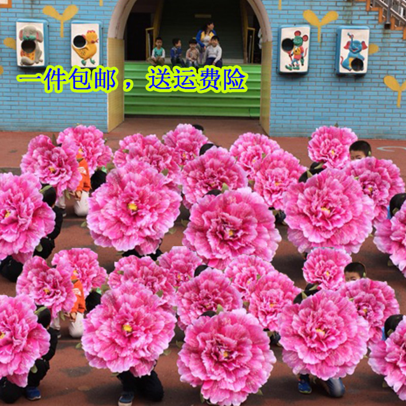 跳舞手拿花牡丹花道具跳广场舞儿童表演花开幕式入场幼儿园演出