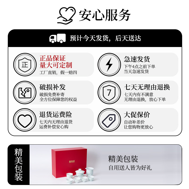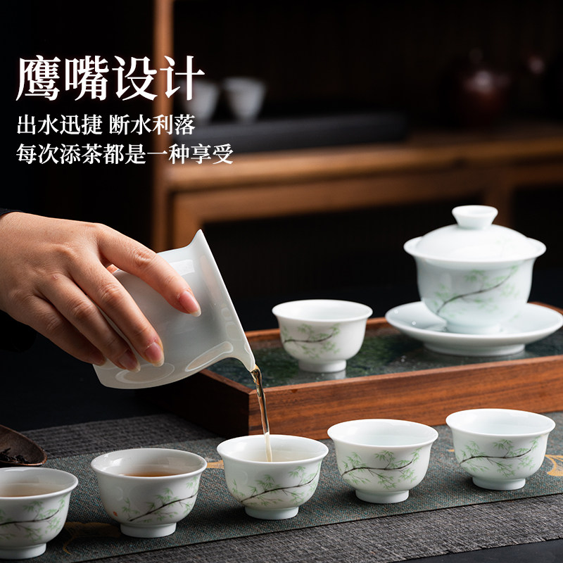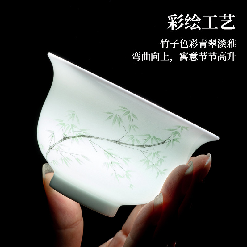 昌南影青瓷雅竹盖碗茶杯一套景德镇陶瓷高端功夫茶具套装瓷器茶器