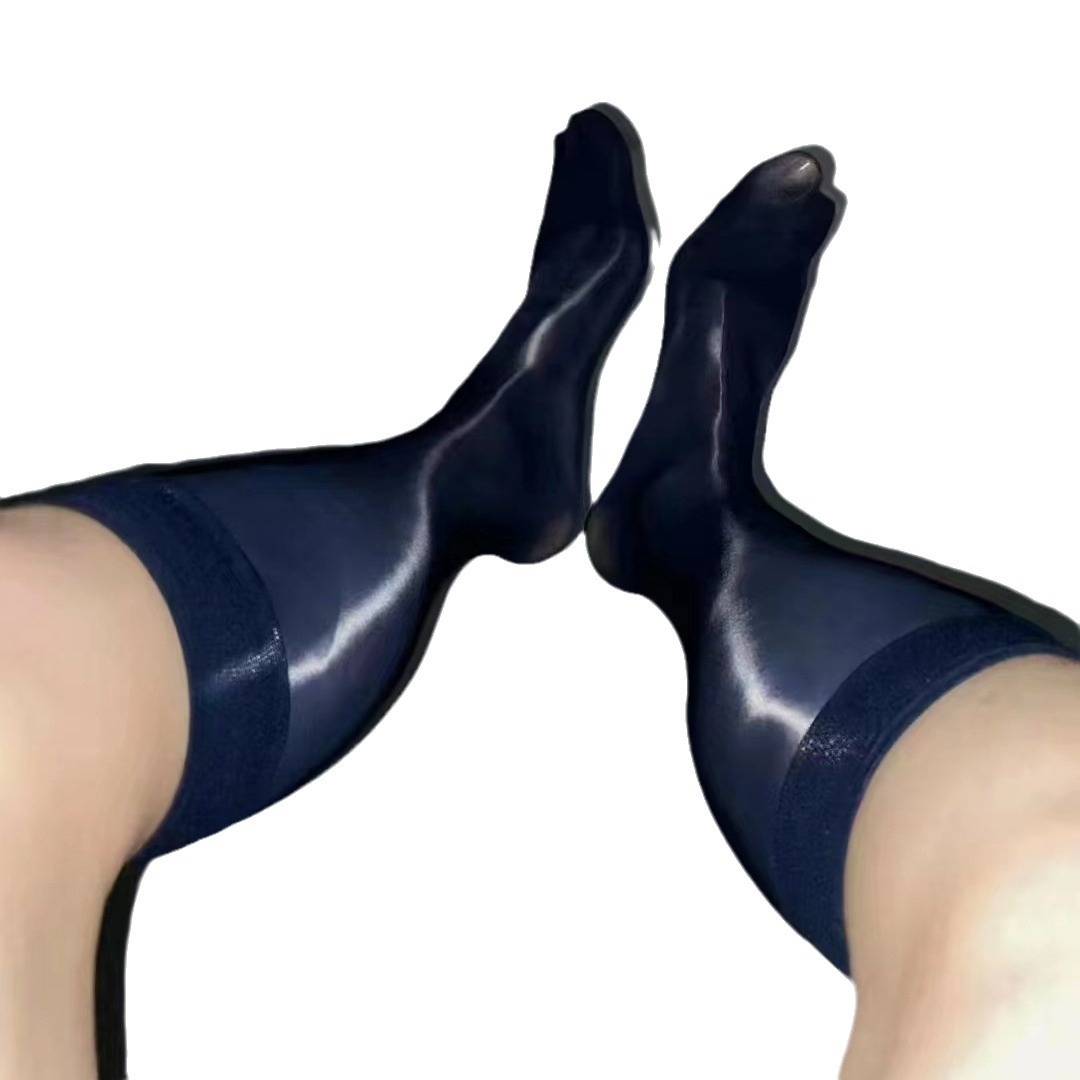 镜面丝袜男士男士正装丝袜丝袜中筒丝滑油光亮面黑丝袜