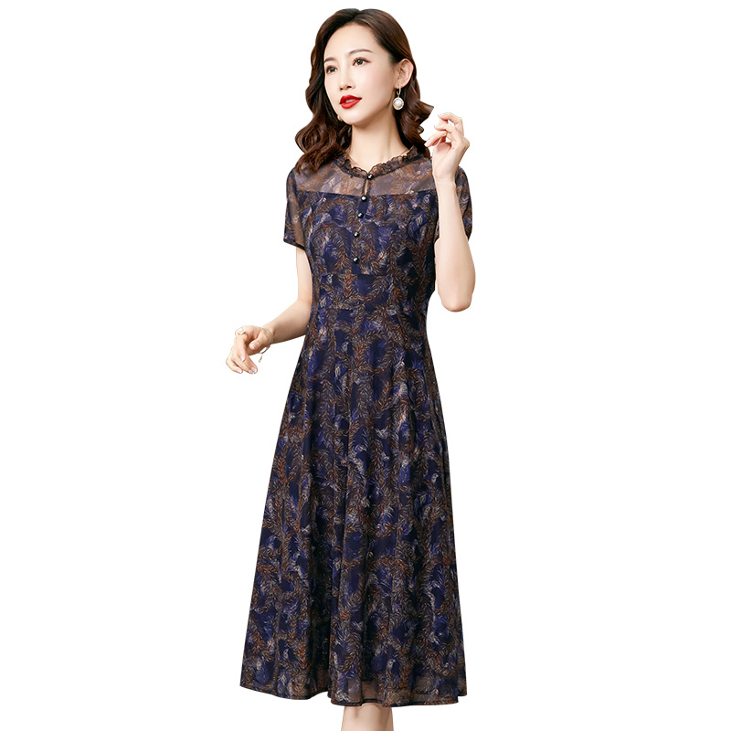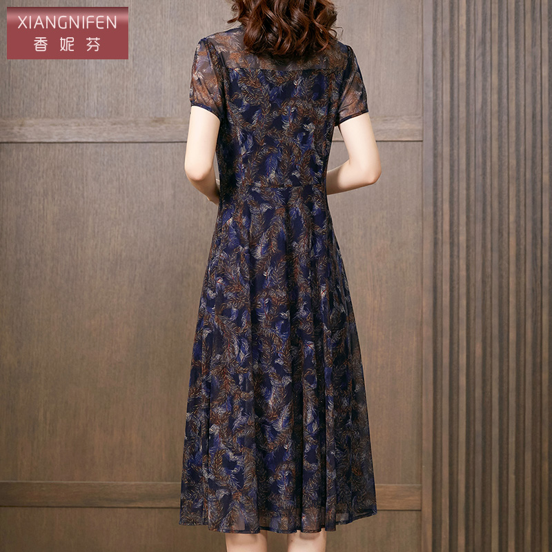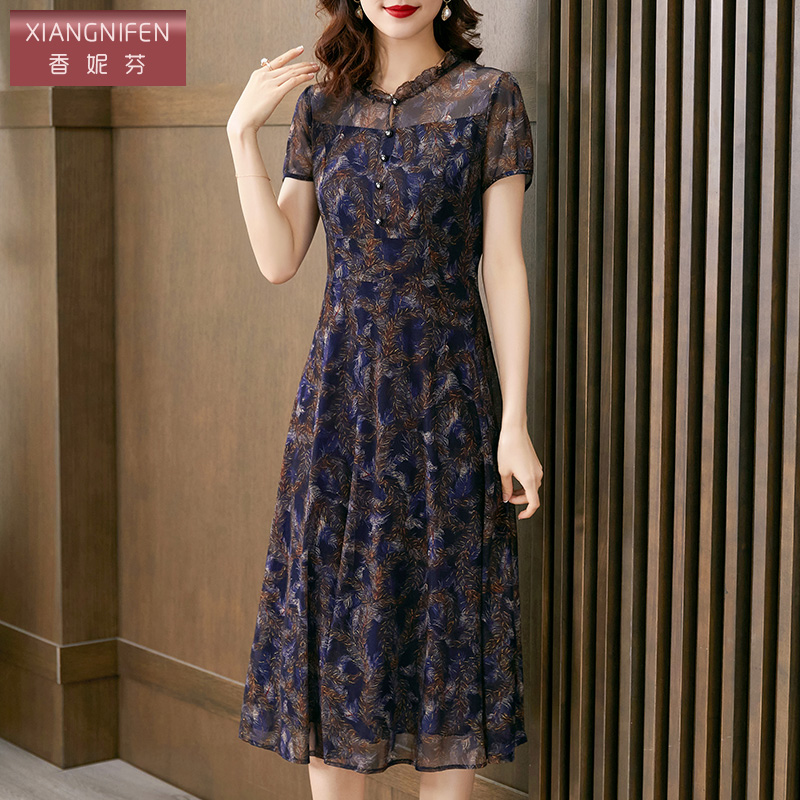 香妮芬高端台湾网纱休闲连衣裙女夏装2025新款收腰遮肚子短袖裙子