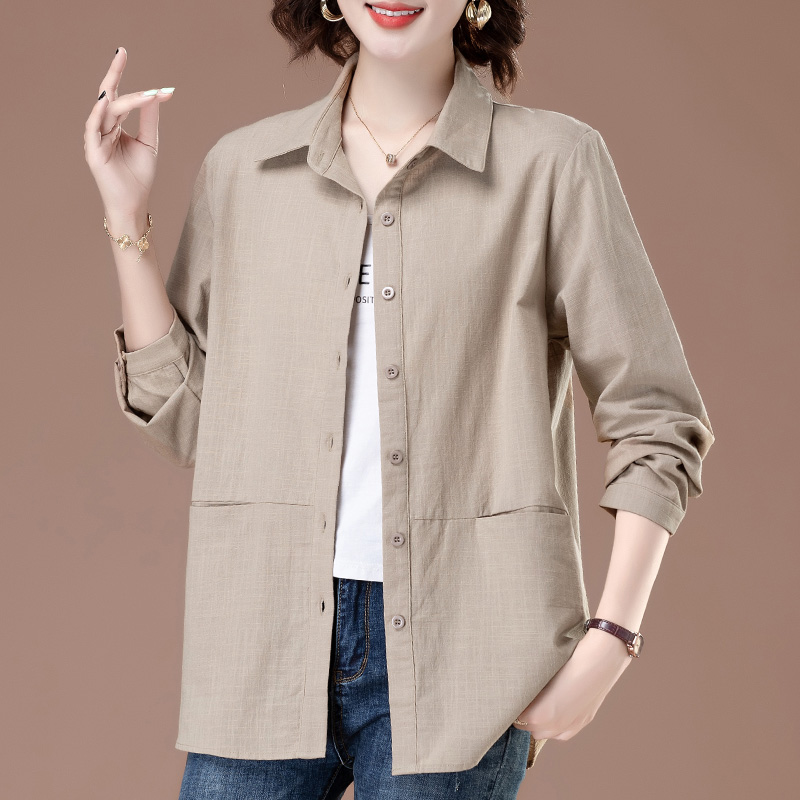 女式衬衫全棉长袖春秋翻领上衣洋气妈妈新款纯棉衬衣中年女士外套