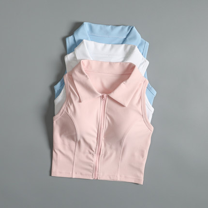 运动背心女夏季跑步训练防震专业前拉链瑜伽健身速干遮副乳文胸