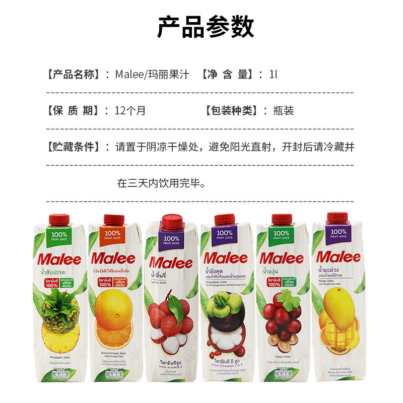 Malee玛丽果汁菠萝汁橙汁泰国进口100%果汁葡萄芒果山竹果汁