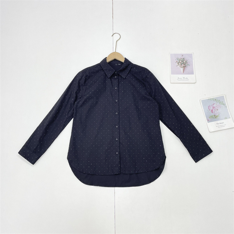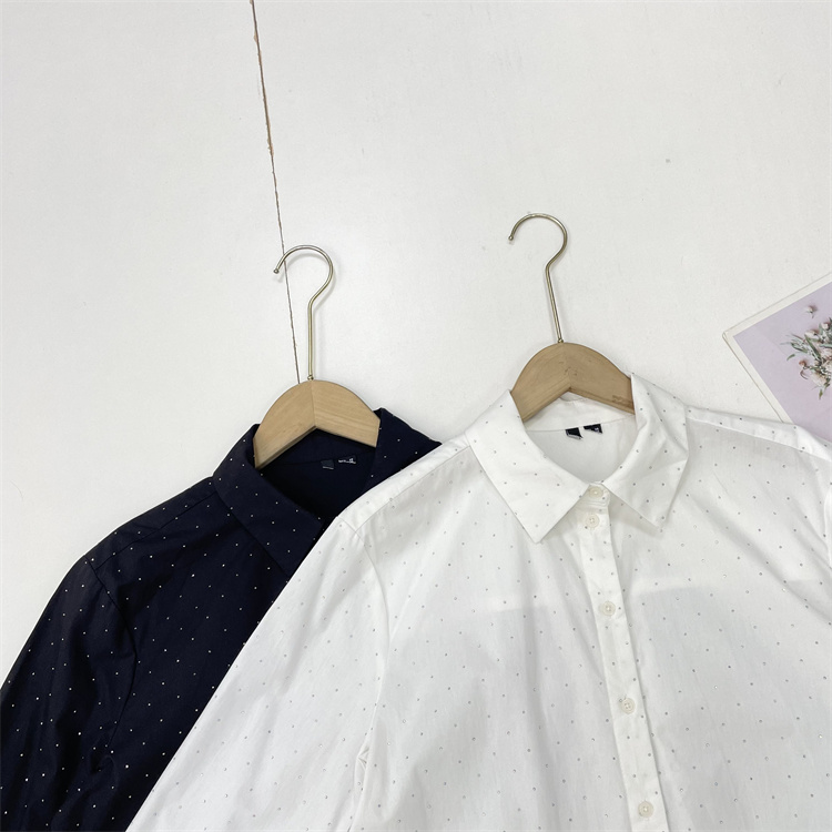 N2整身小钻款~北欧外单25秋新长袖纯色翻领衬衫开衫上衣复古时尚