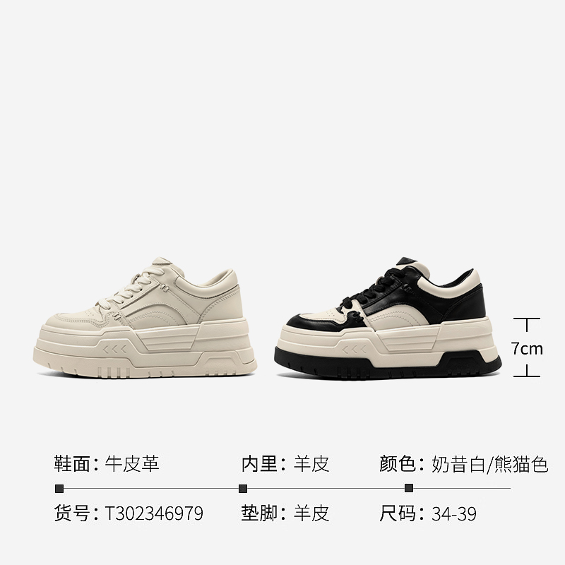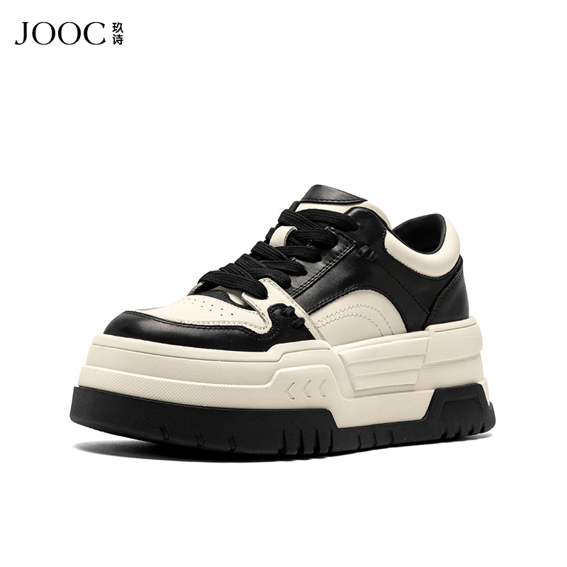 JOOC玖诗厚底熊猫鞋女板鞋当季热卖新款系带增高休闲运动鞋潮拼色