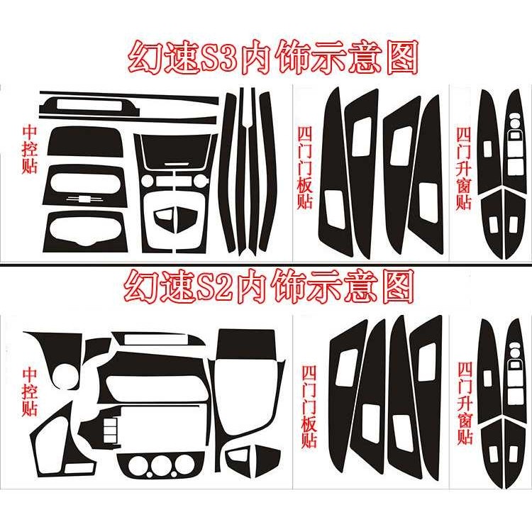 适用于北汽幻速S3/S2内饰改装贴纸 中控排挡装饰碳纤维改色车贴膜