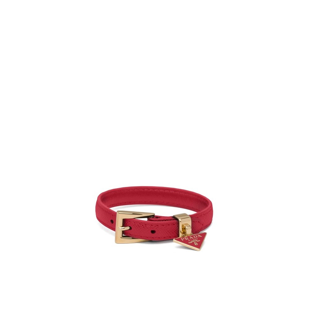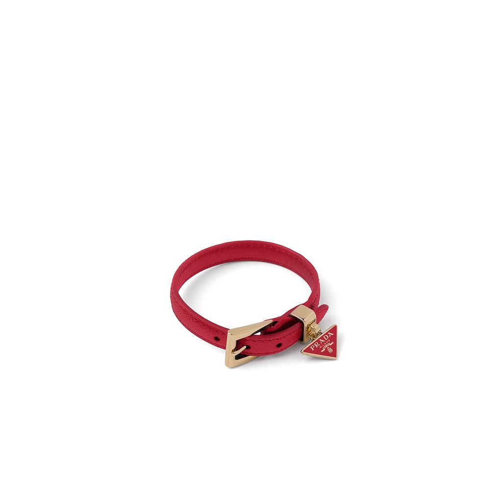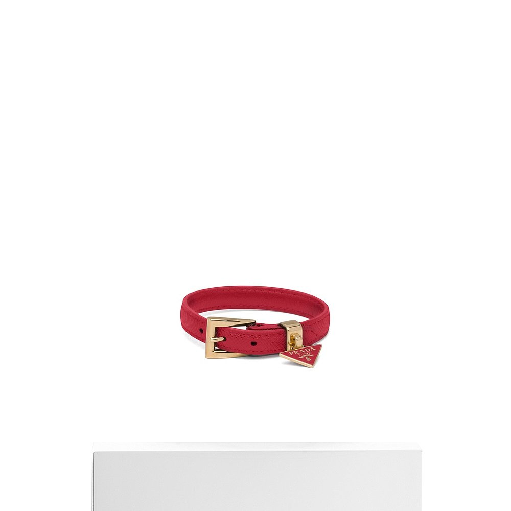 自营欧洲直邮Prada普拉达 Saffiano女士亮红色小牛皮金属搭扣手链