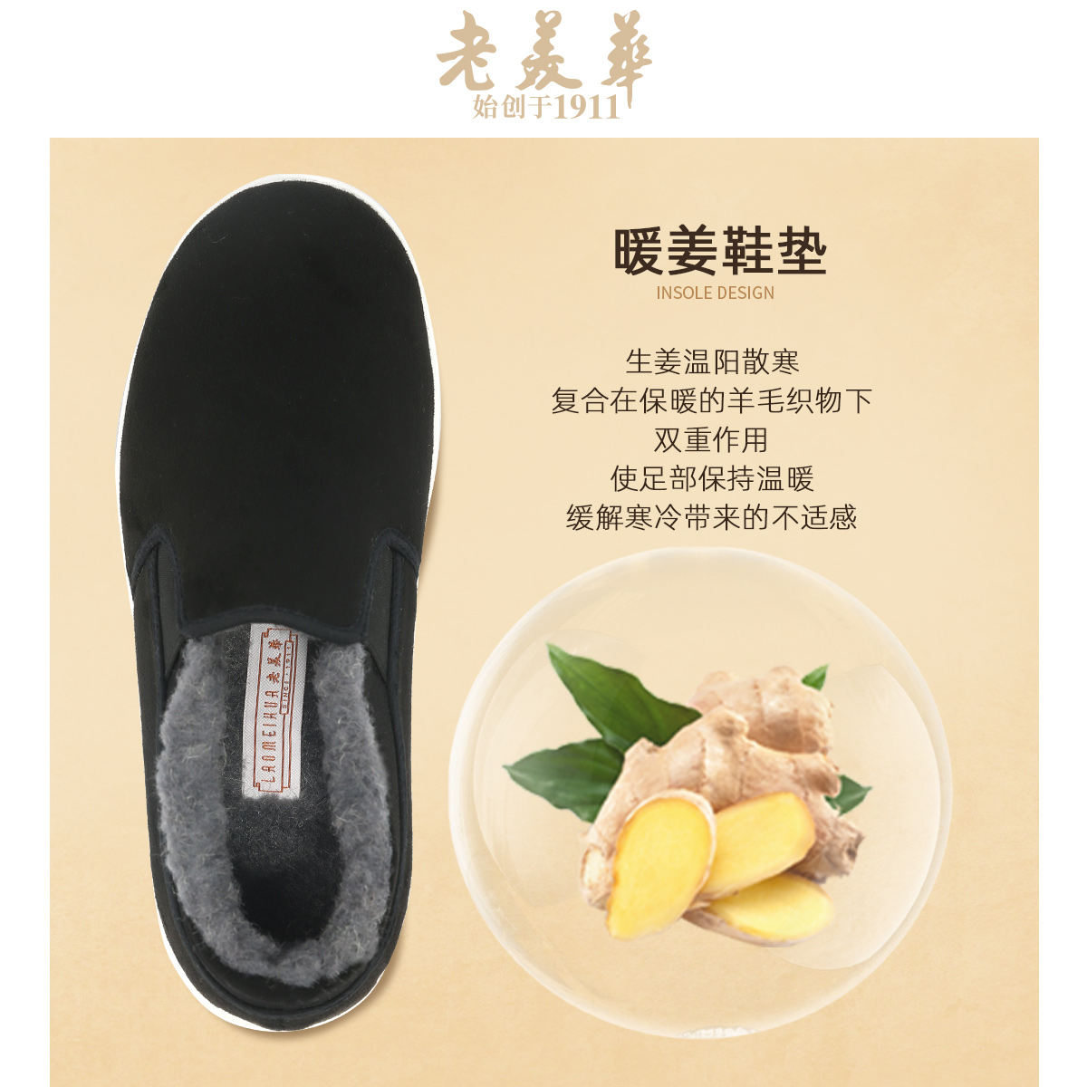 老美华冬季加绒保暖绵羊毛棉鞋老北京布鞋男千层底爸爸鞋休闲鞋