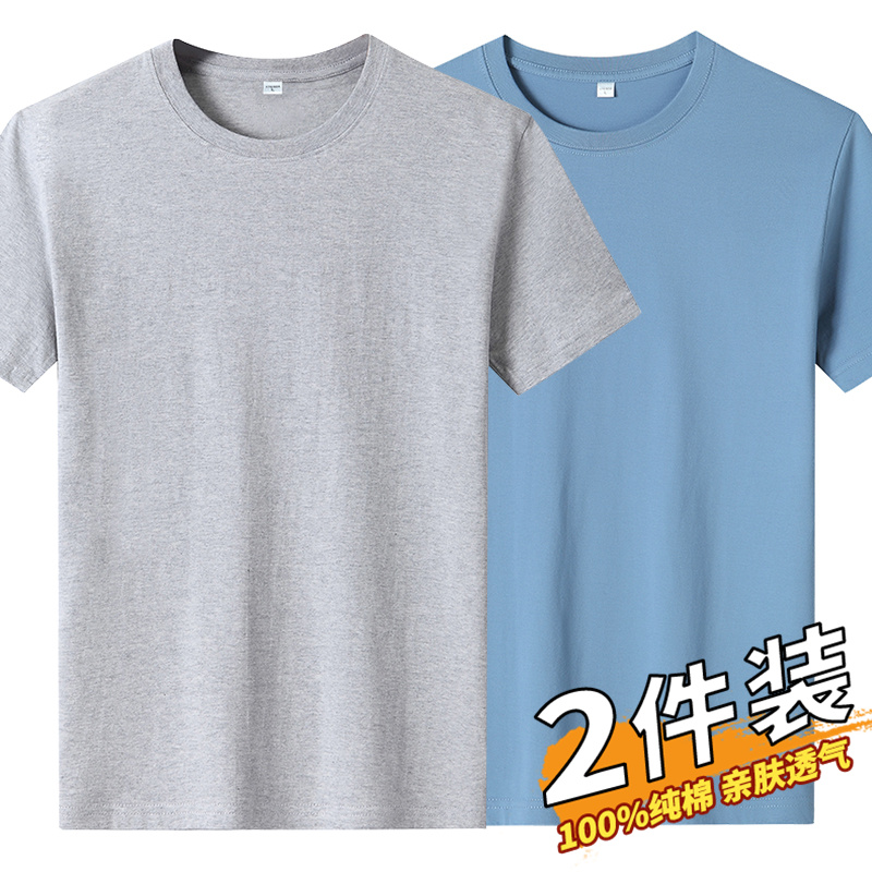 100%全棉短袖t恤男夏季圆领纯棉半袖宽松潮流大码纯色打底衫上衣