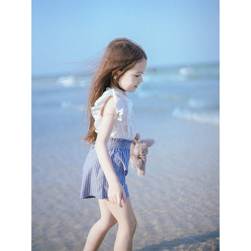 史豌豆童装女童条纹高腰裙裤2024夏季新款儿童洋气休闲百搭短裤潮