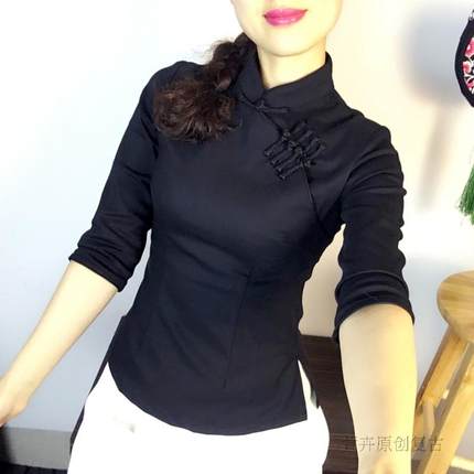 萱卉旗袍上衣中国风女装复古盘扣改良七分袖中式唐装茶艺师汉服
