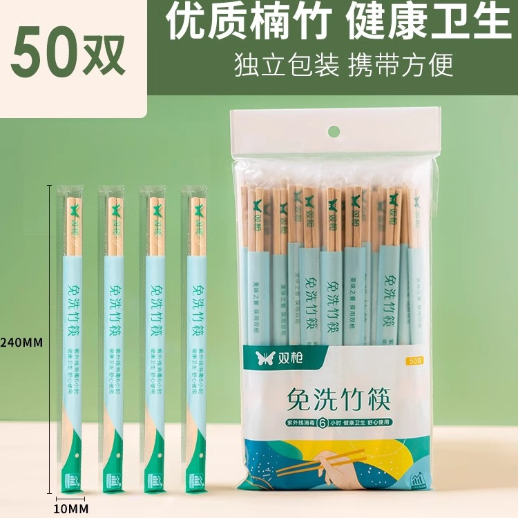双枪一次性竹筷子免洗竹筷50双独立装方便筷天然无漆竹筷打包筷子