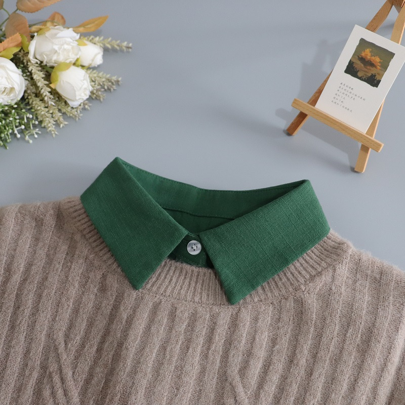 小雪之屋秋冬棉麻大尖领假领子女百搭配毛衣内搭衬衫绿衣领假衣领