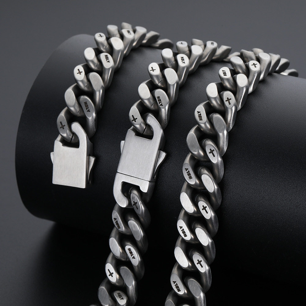 欧美小众设计嘻哈潮男古巴手链男士钛钢高级感复古链子男生饰品帅