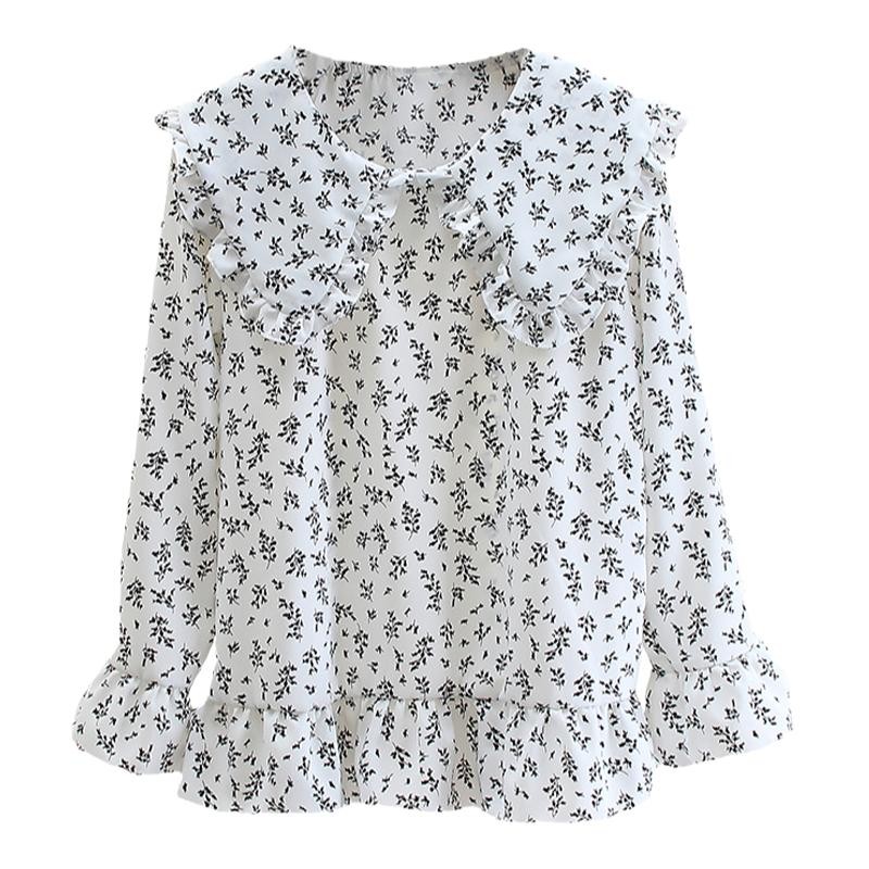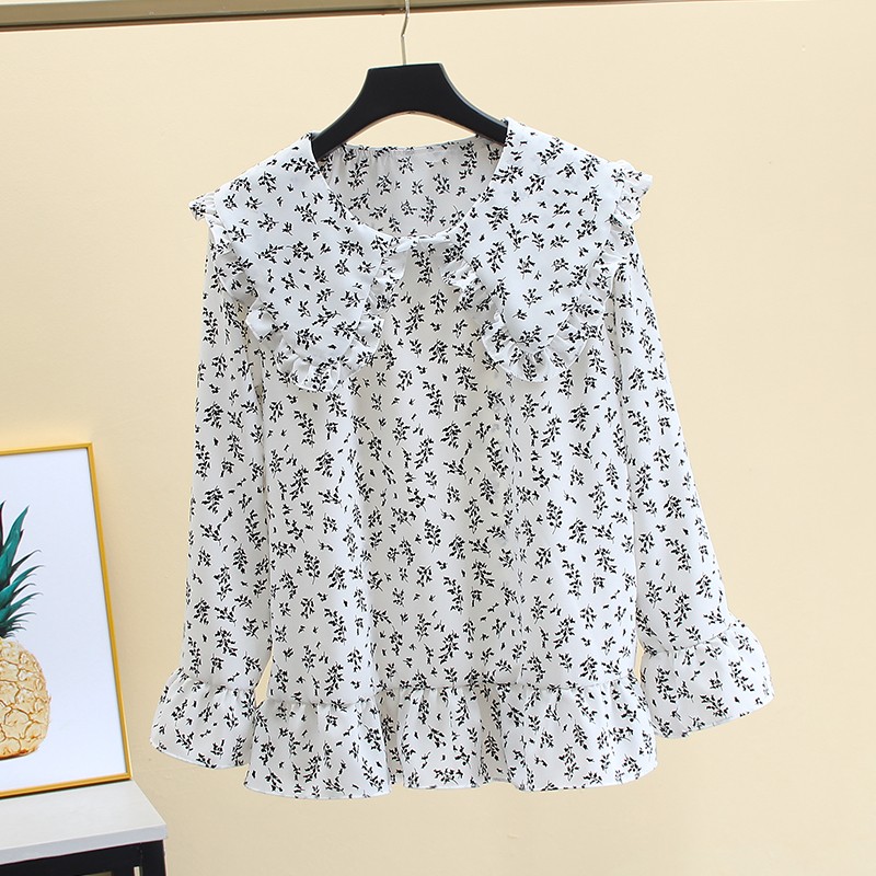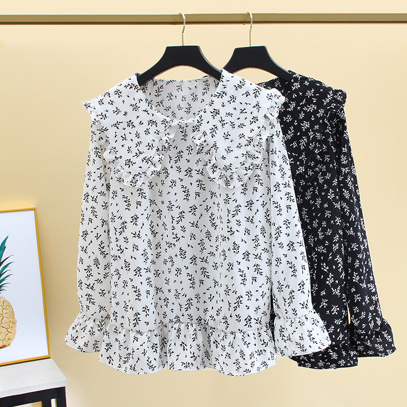 中长款白色衬衫女长袖春装新款学生大码宽松雪纺衫娃娃领上衣外穿