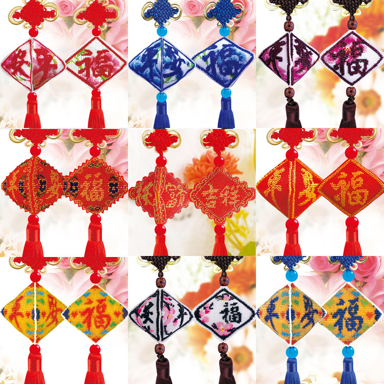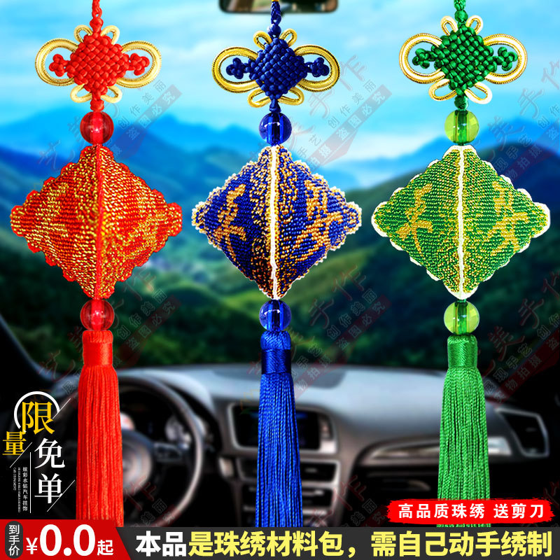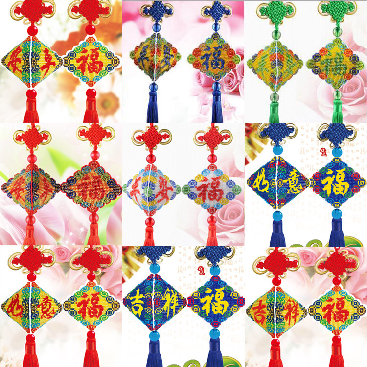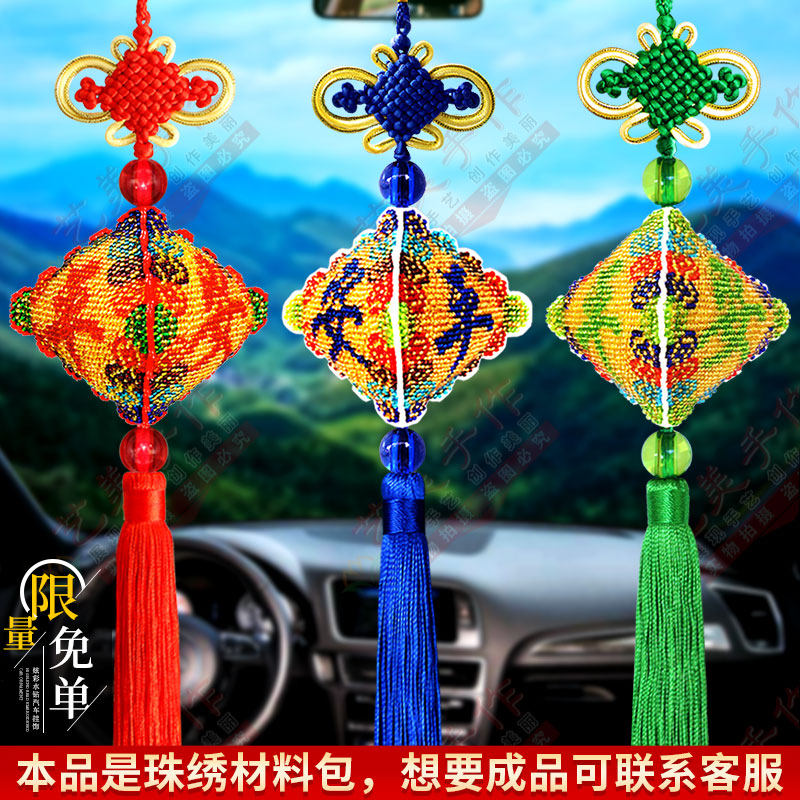 珠绣汽车挂件平安福十字绣串珠福字小件挂饰手工DIY自己绣平安符