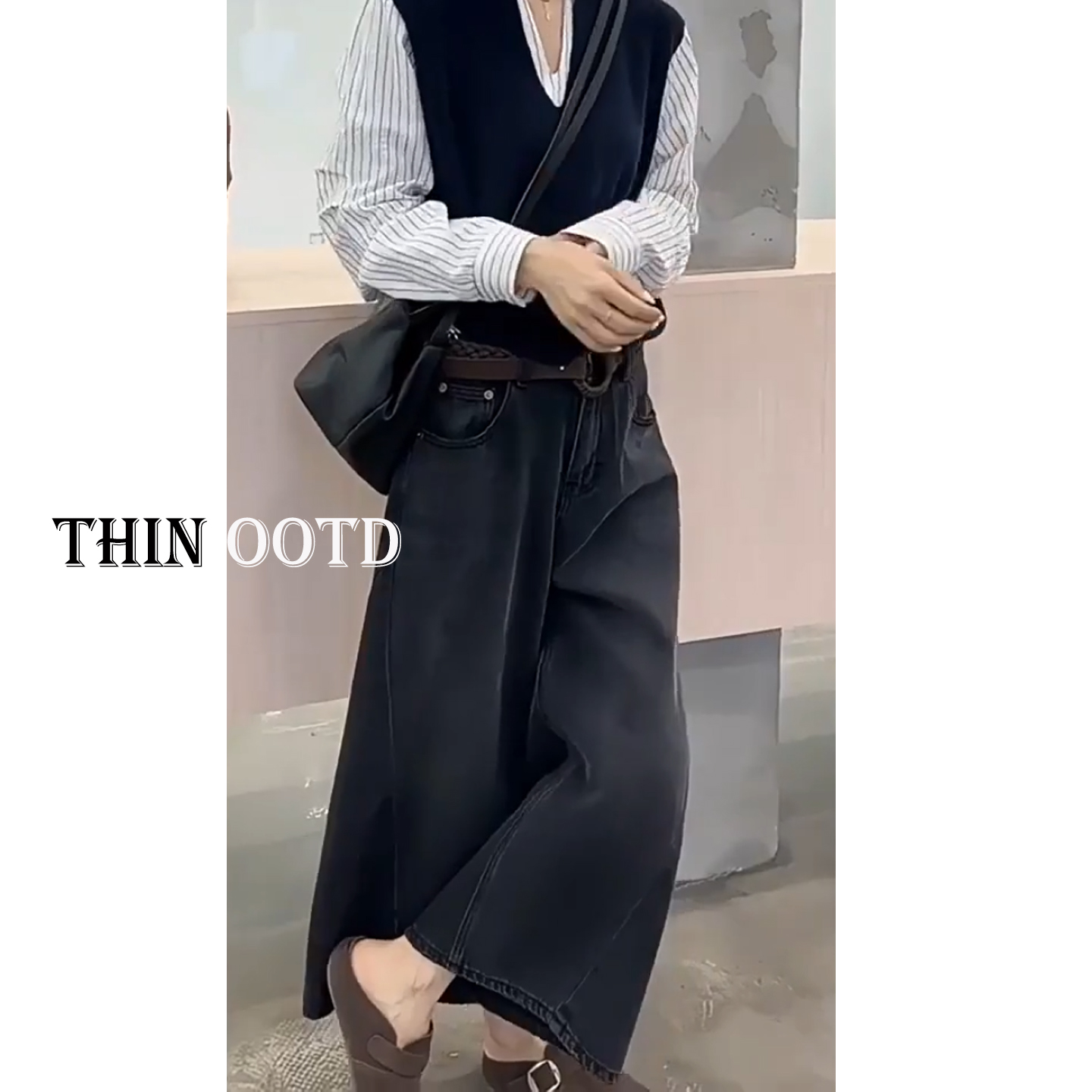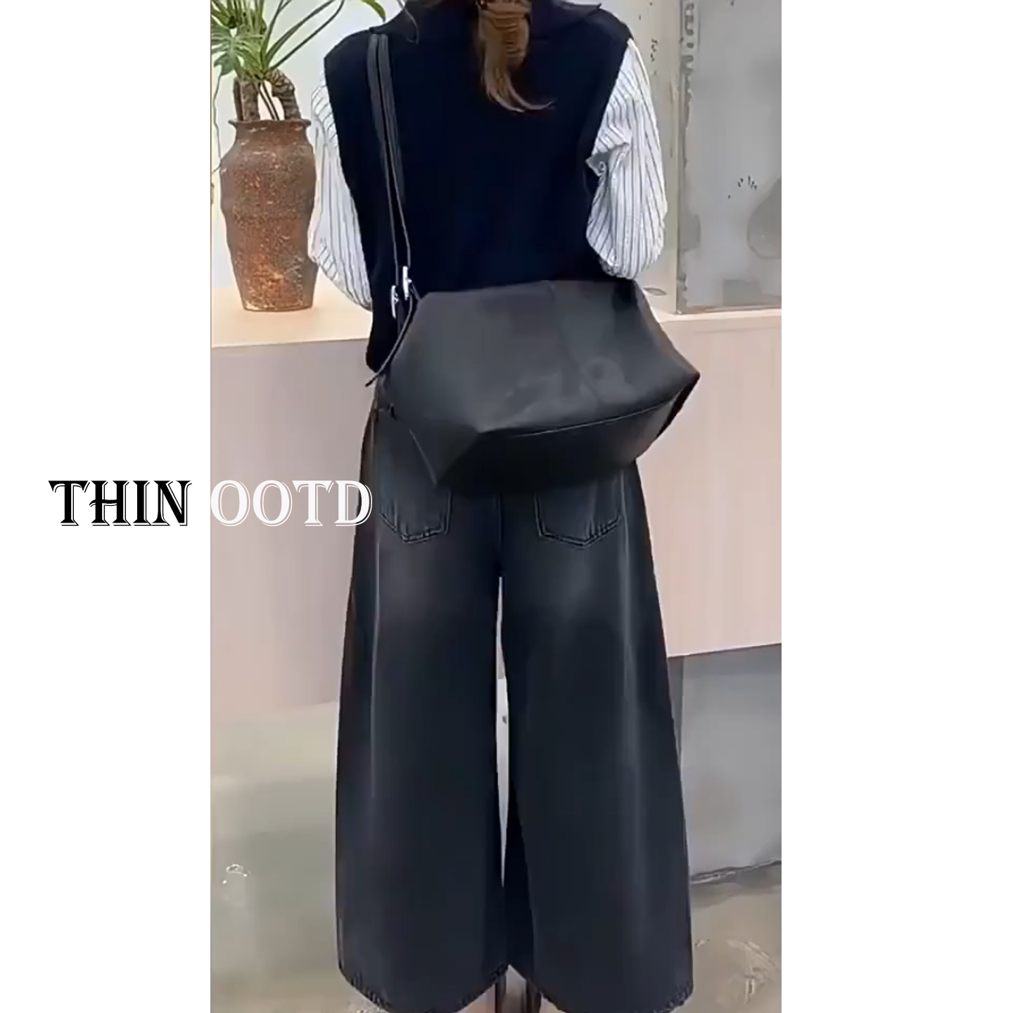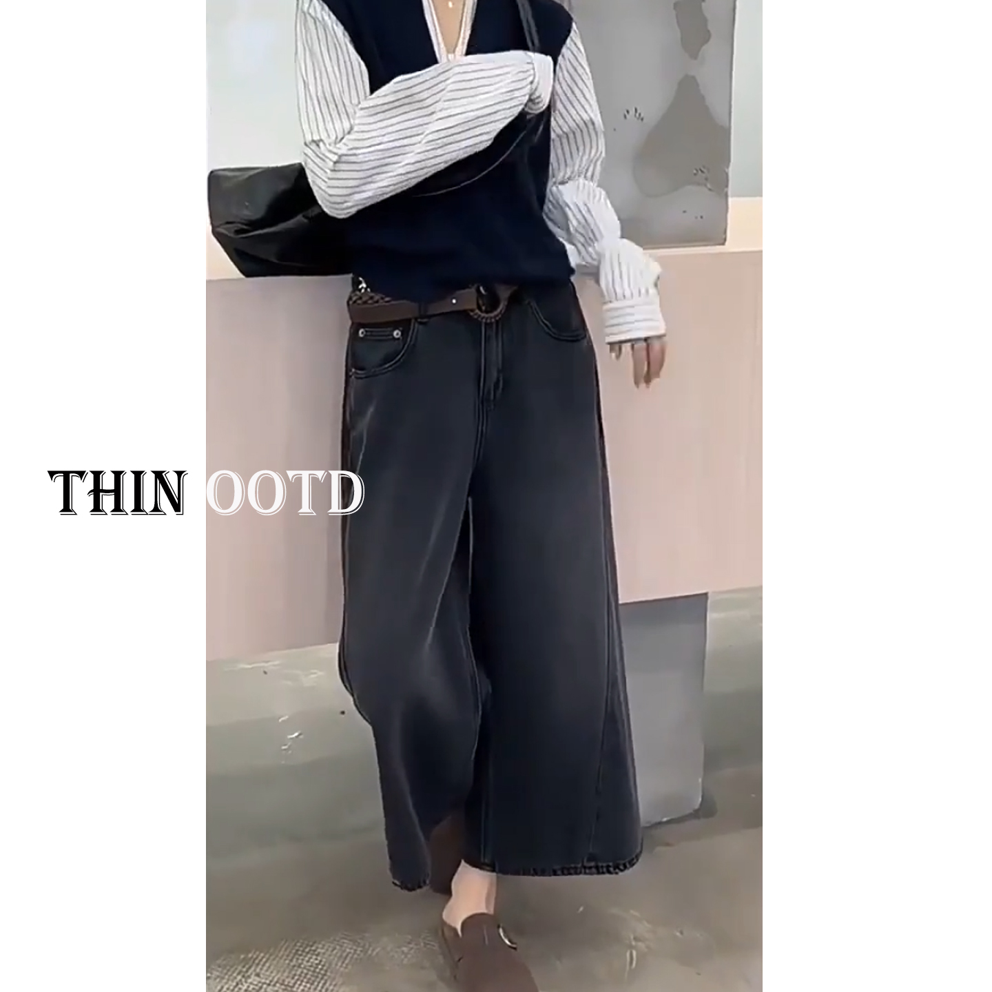遮肉又显瘦~黑色阔腿牛仔裤~