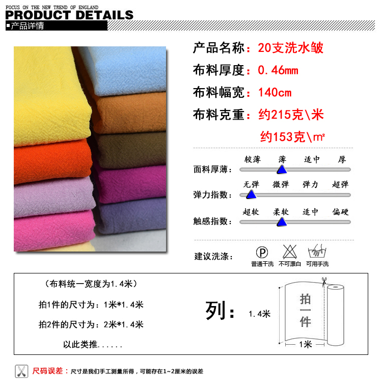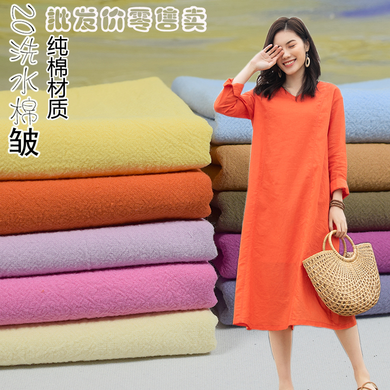 水洗全棉纯棉布纯色手工亚麻竹节棉麻布料汉服装面料包邮春夏薄款