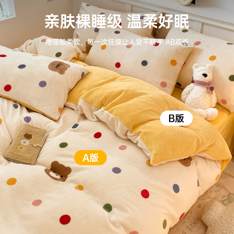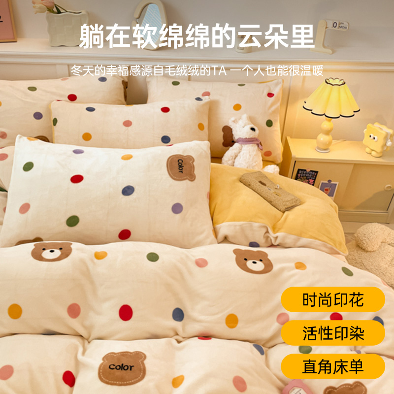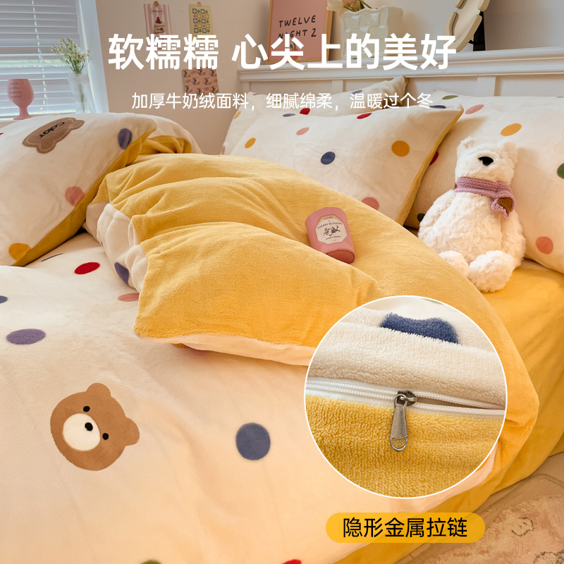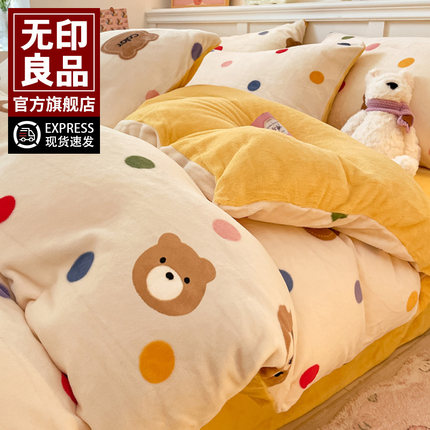 无印良品卡通牛奶绒四件套冬季加绒学生儿童被套床单三件套床品