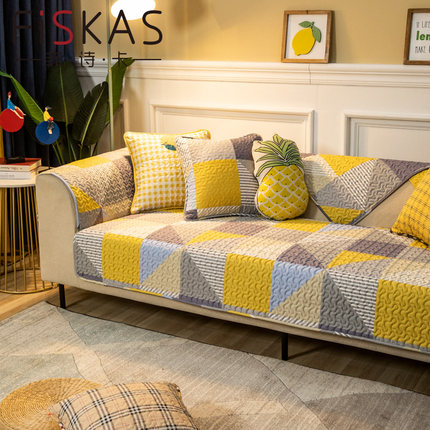 简约现代四季通用纯棉防滑沙发垫