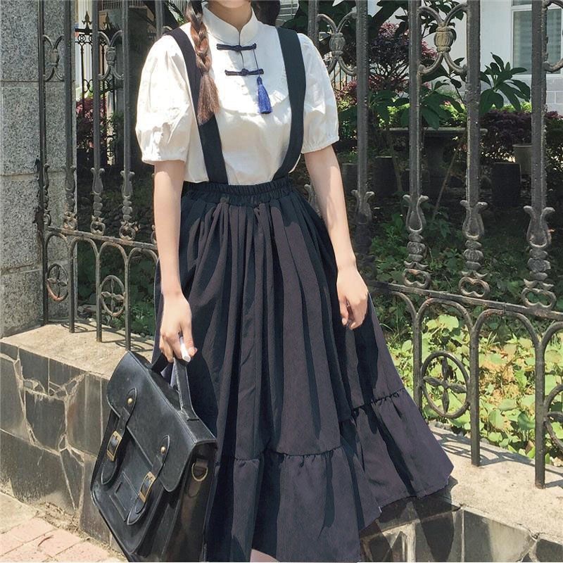 学院风夏季日系法式新款复古甜美背带连衣裙百搭显瘦衬衫单件套装