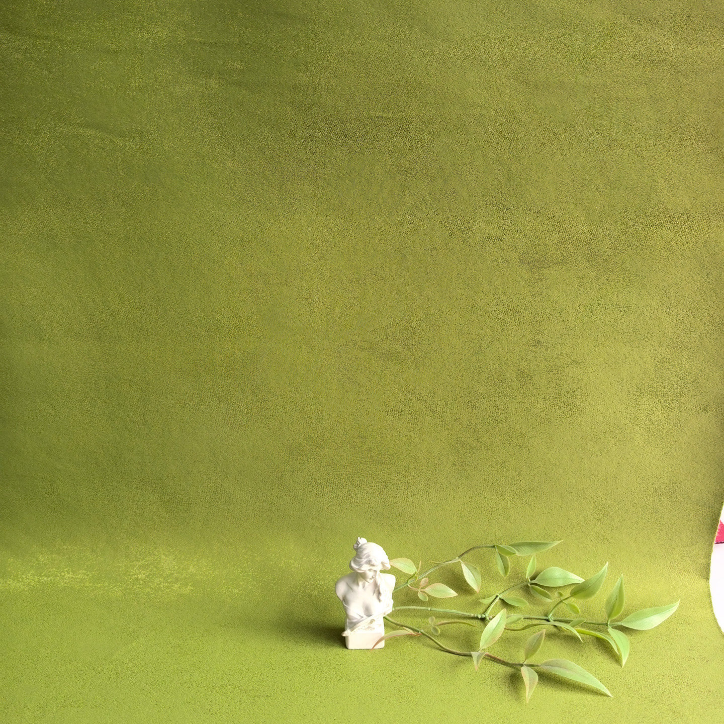 绿色缎面斑驳暗纹提花面料新中式黄绿色高端无缝壁布纯色简约素色
