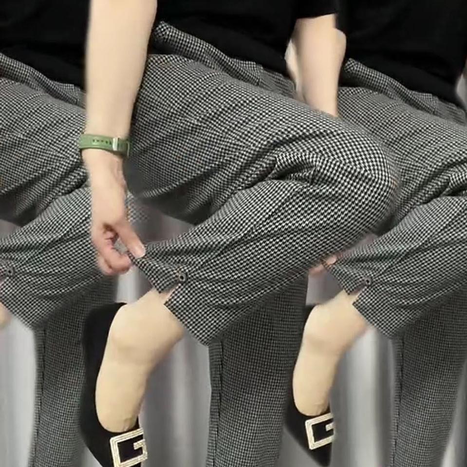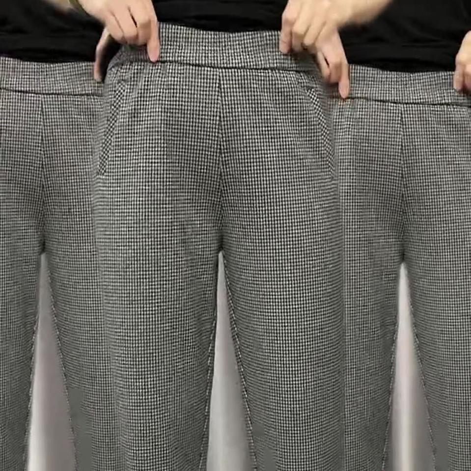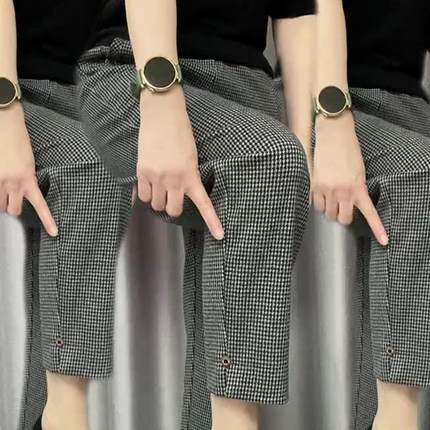 2025年新款格子时尚千鸟格高腰休闲裤九分女裤洋气百搭显瘦哈伦裤