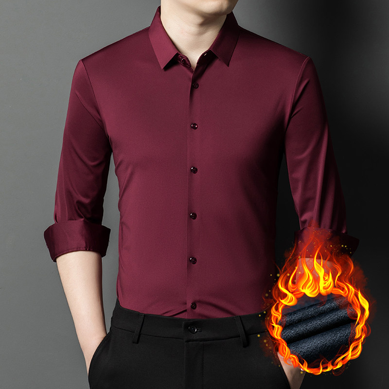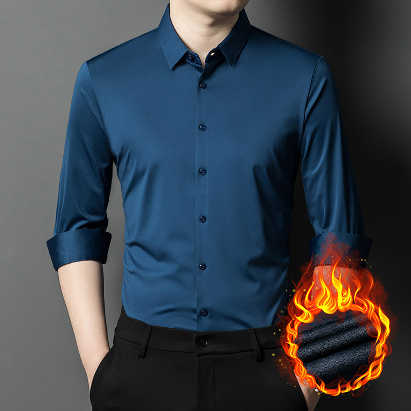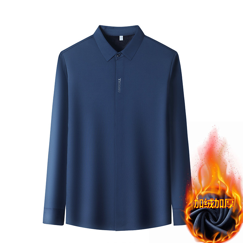 鄂尔多斯市羊绒衬衫男士中年高级感大码加绒保暖免烫磨毛纯色衬衣