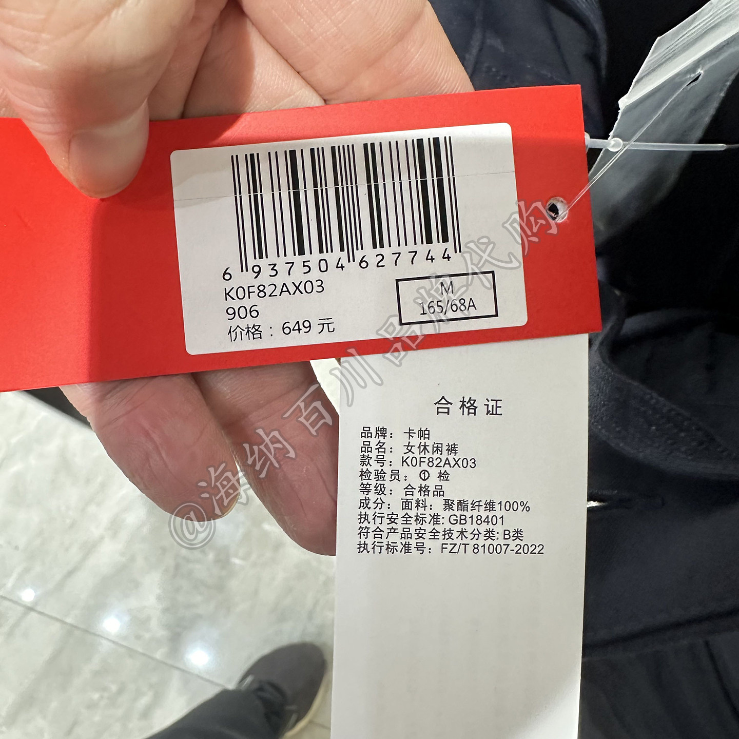 kappa女款休闲针织长裤