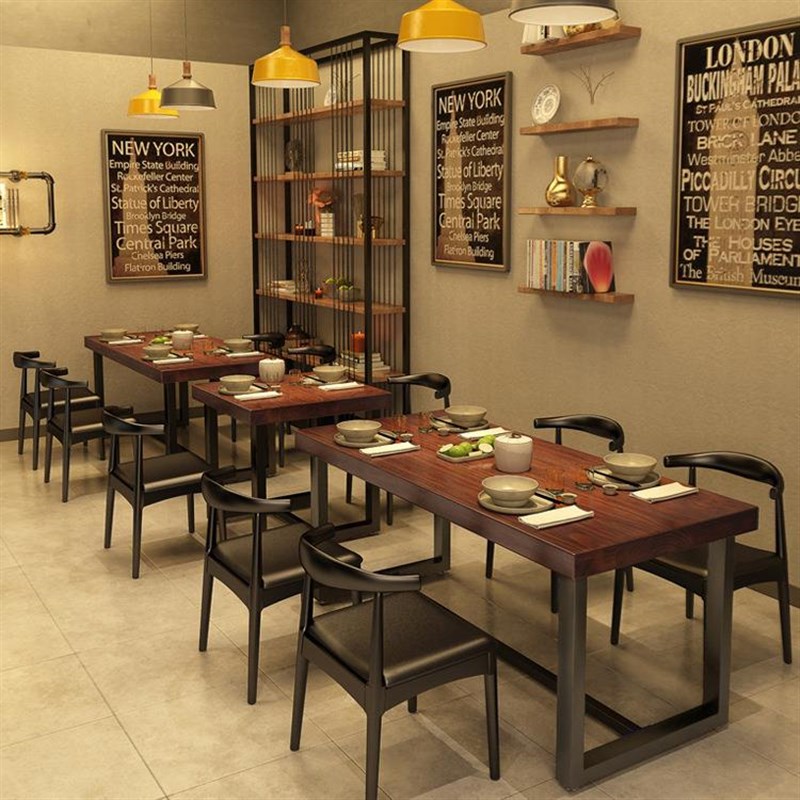 美式工业风实木餐桌椅组合家用饭桌快餐店餐馆食堂火锅店桌椅