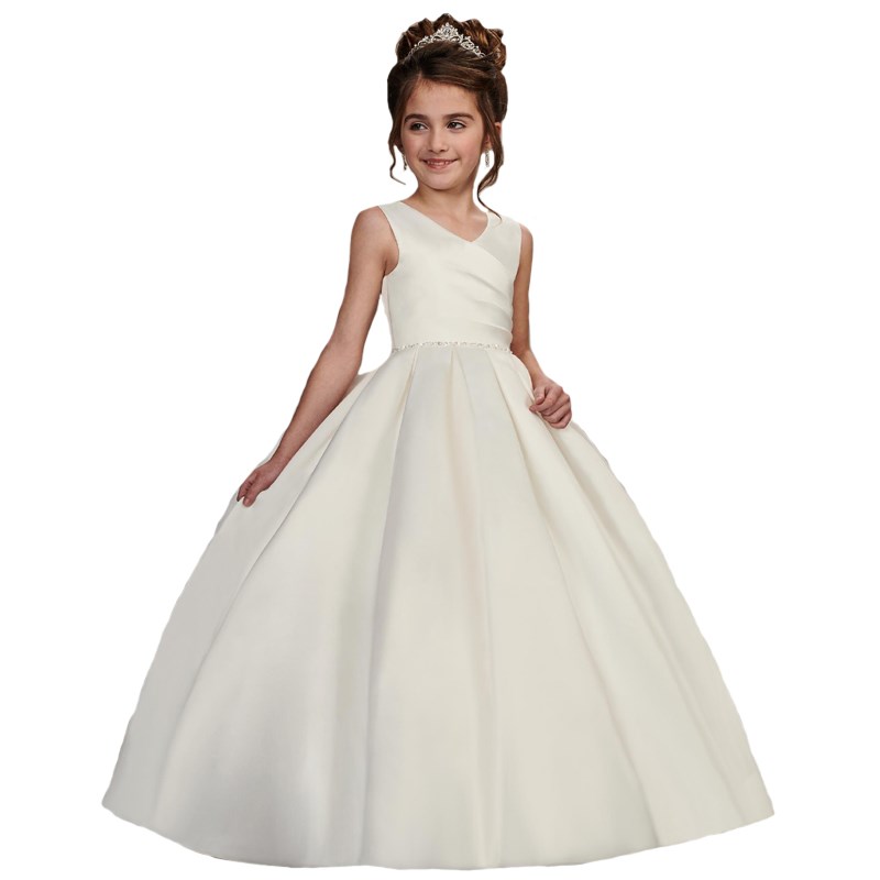 欧若拉儿童礼服定制锻面绑带长款伴娘婚纱裙女童大提琴演出晚礼服