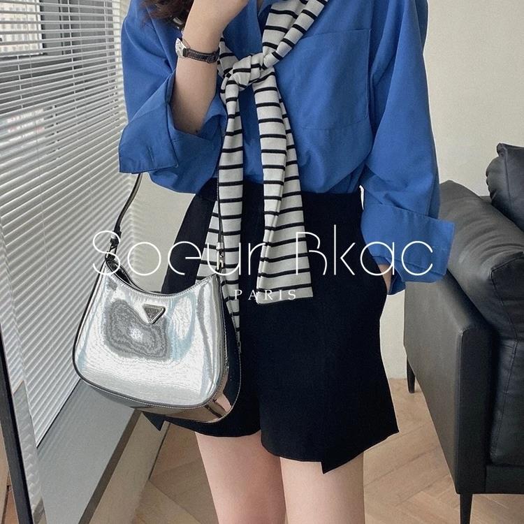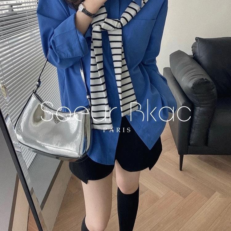 法国SOEUR BKAC法式春季高级显白克莱因蓝衬衫时尚百搭叠穿衬衣女