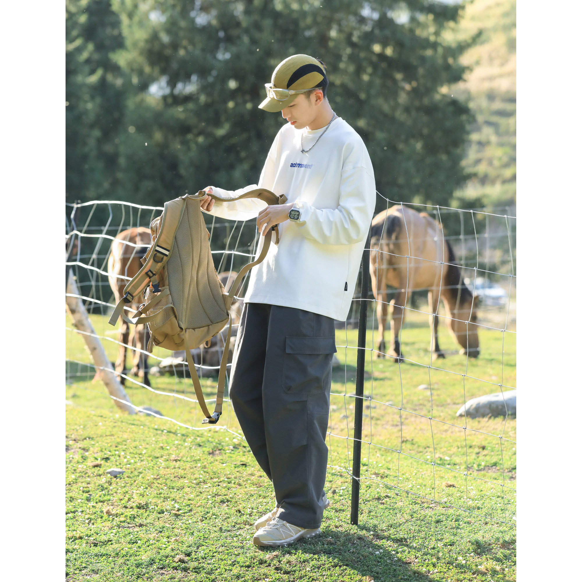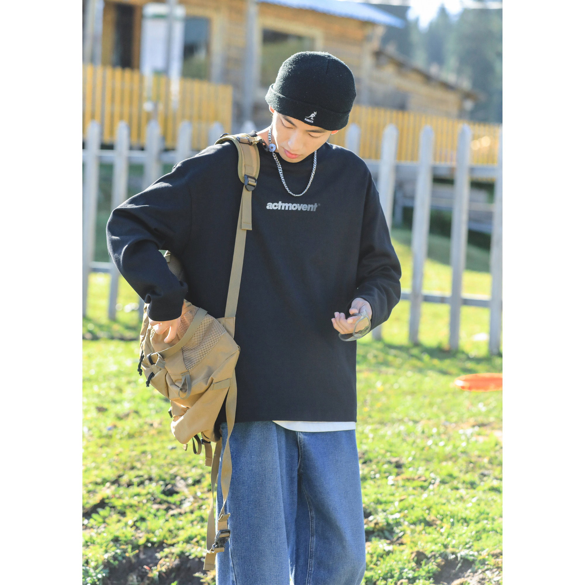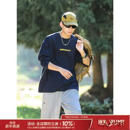 吕小虎高级感痞帅长袖t恤男士秋季宽松上衣男生藏青色内搭打底衫