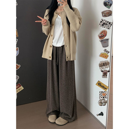 大码胖mm梨型2025秋冬休闲宽松美拉德穿搭咖色糯米直筒阔腿裤子女