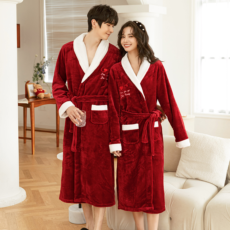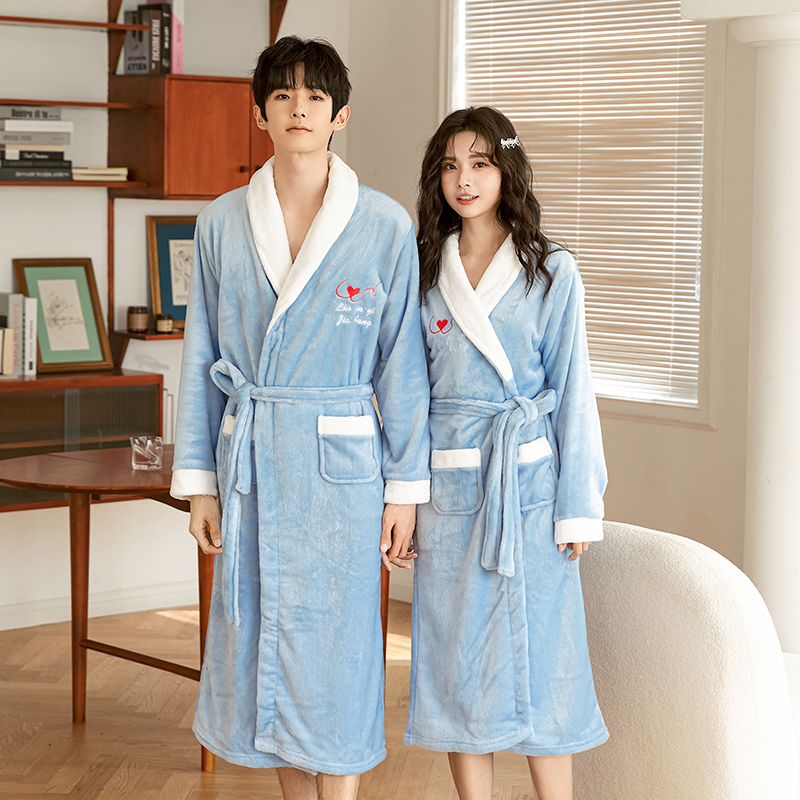法兰绒男士睡袍女士情侣睡衣秋冬季珊瑚绒浴袍式加厚保暖长款居家