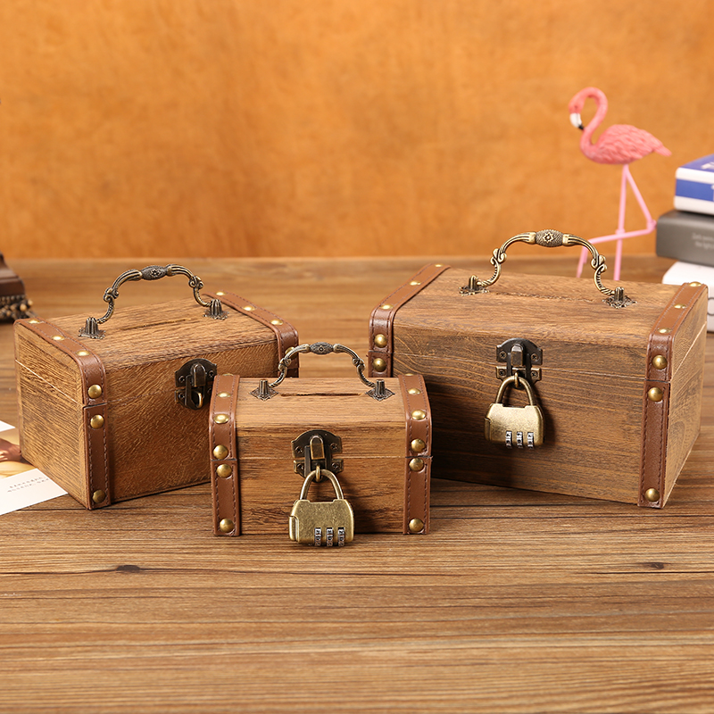 实木存钱罐儿童密码箱储蓄罐男孩储钱罐可存可取保险盒带锁收纳盒