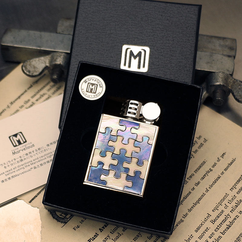 日本Marvelous玛乐思复古纯铜防风煤油打火机银拉丝雕刻贝壳M-B/W