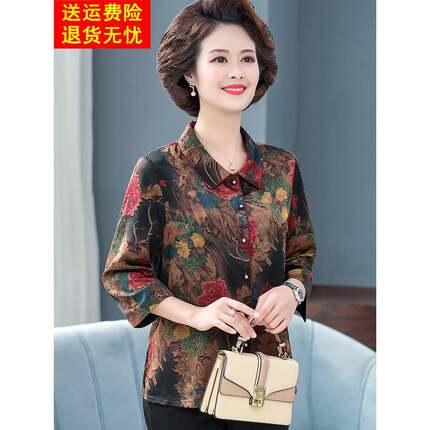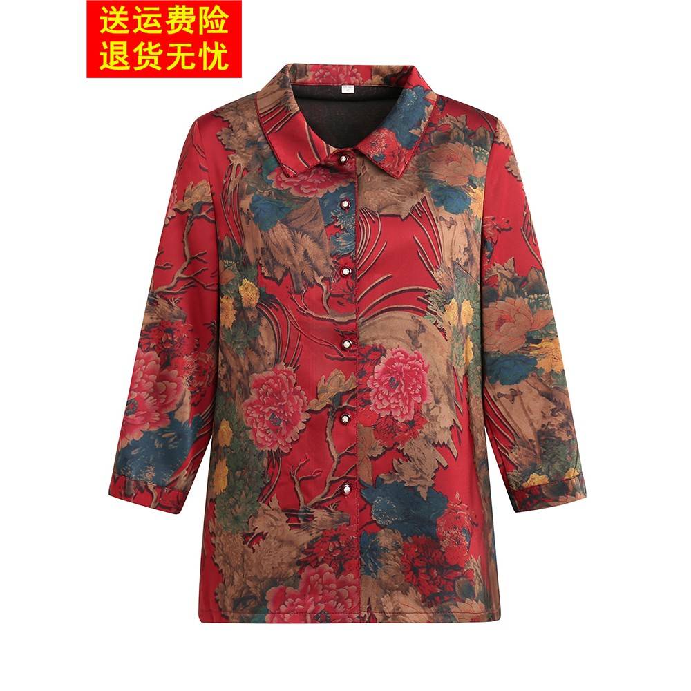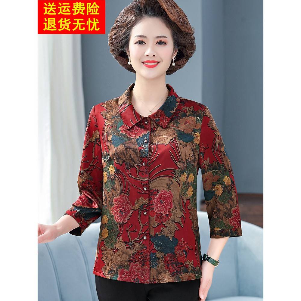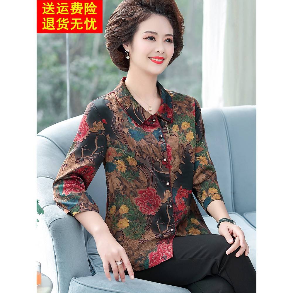 中老年女装妈妈装夏装桑蚕丝上衣套装洋气中年妈妈衬衫真丝两件套