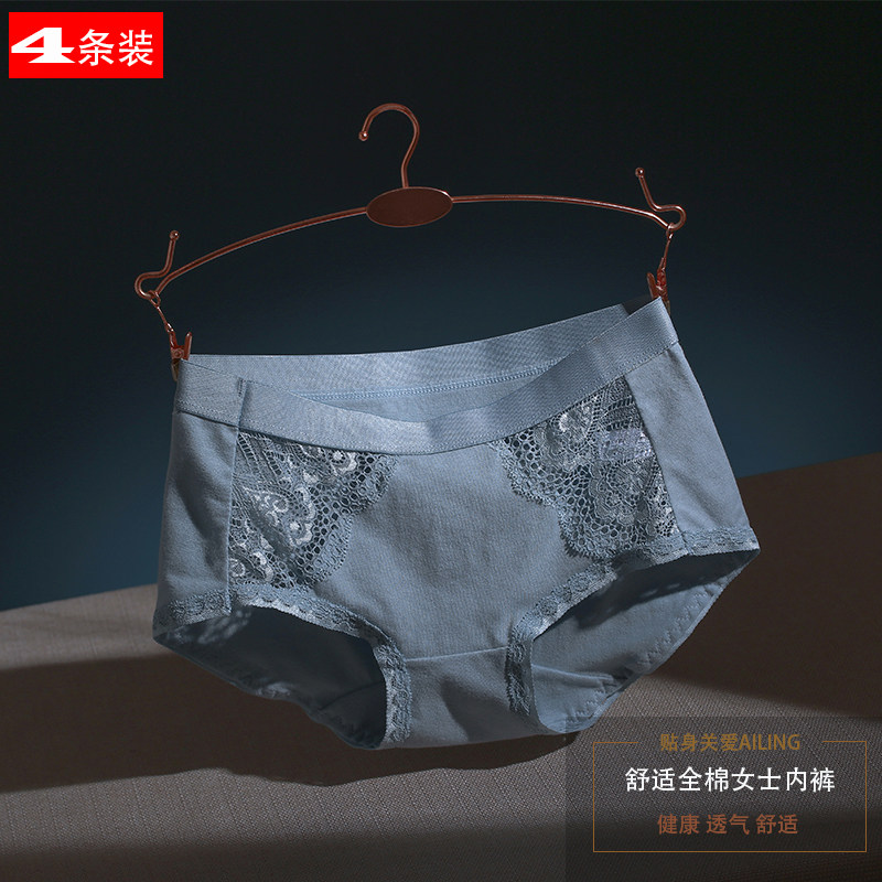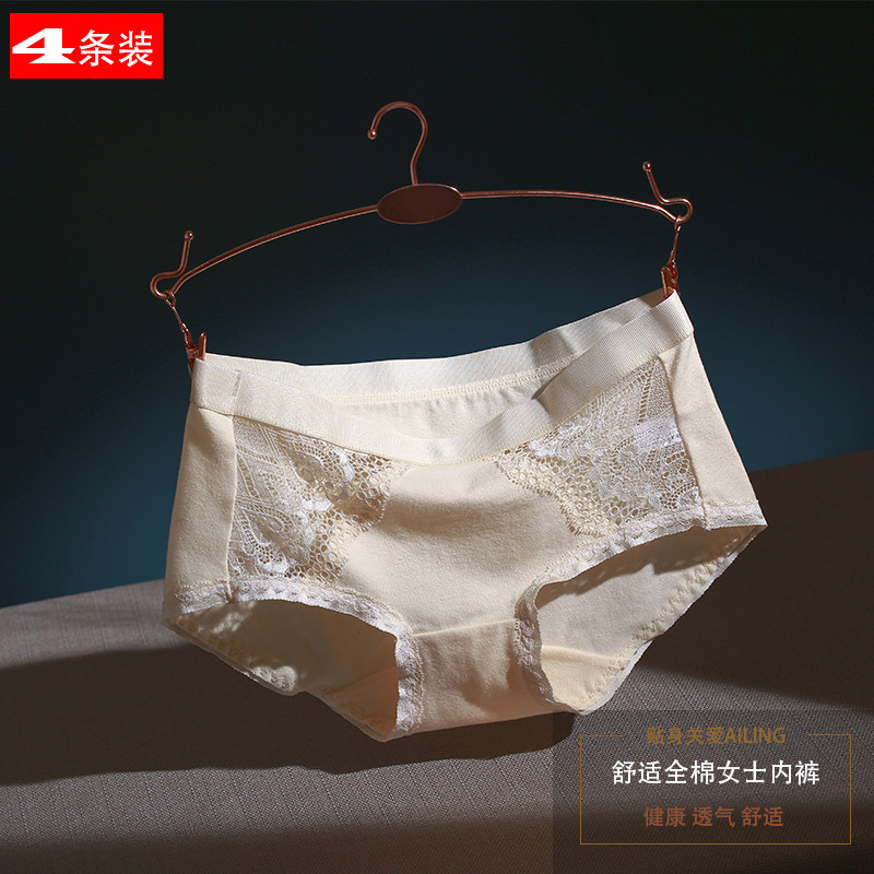 4条纯棉女内裤中腰柔软亲肤棉质面料性感蕾丝纯色包臀透气三角裤