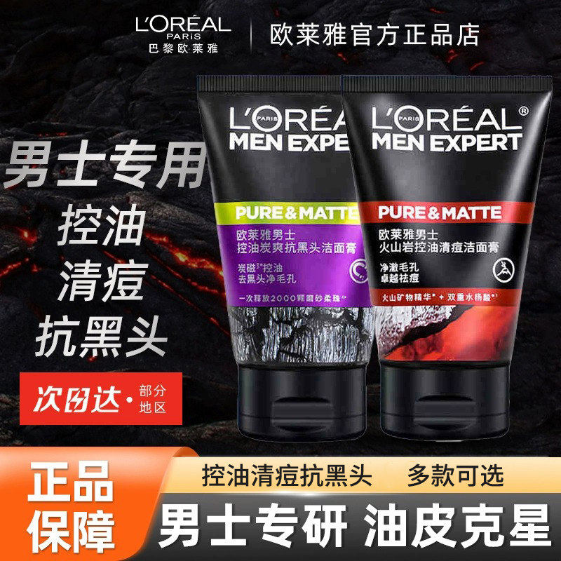 欧莱雅男士专用洗面奶火山泥控油祛痘去黑头洁面乳收缩毛孔清洁