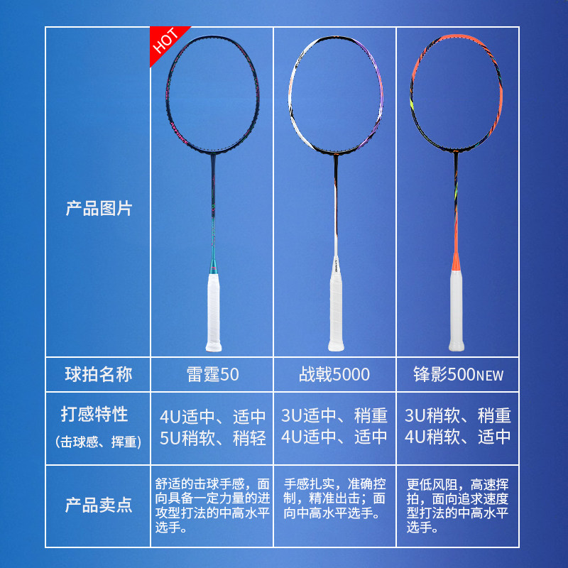 李宁战戟5000控制羽毛球拍全碳素雷霆50进攻型雷霆60正品热销榜