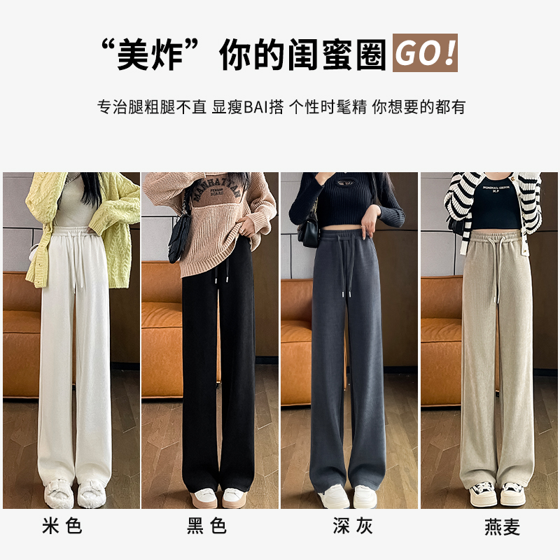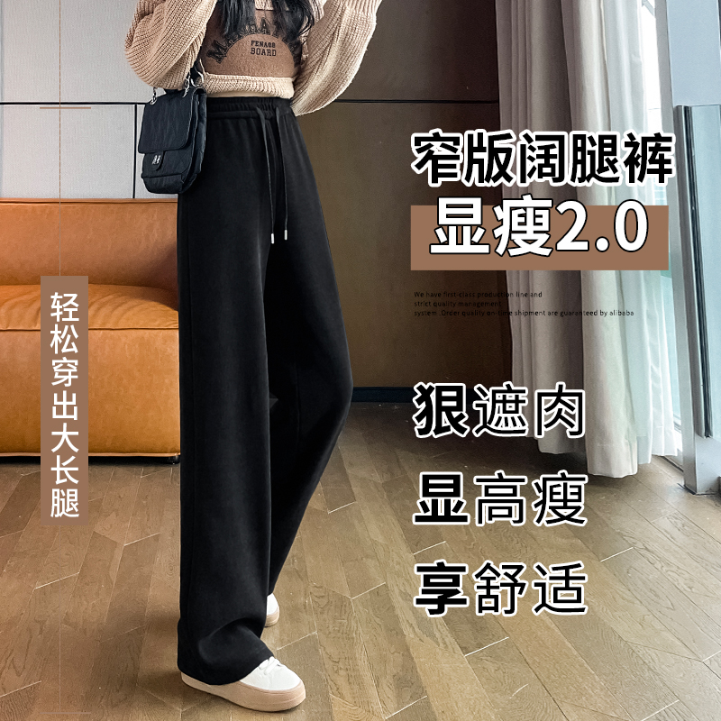窄版阔腿裤女高腰垂感直筒糯米裤