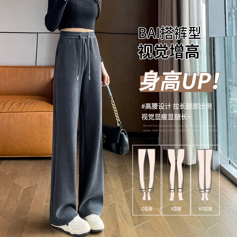 窄版阔腿裤女2025新款秋冬季雪尼尔小个子加绒直筒裤春秋休闲裤子